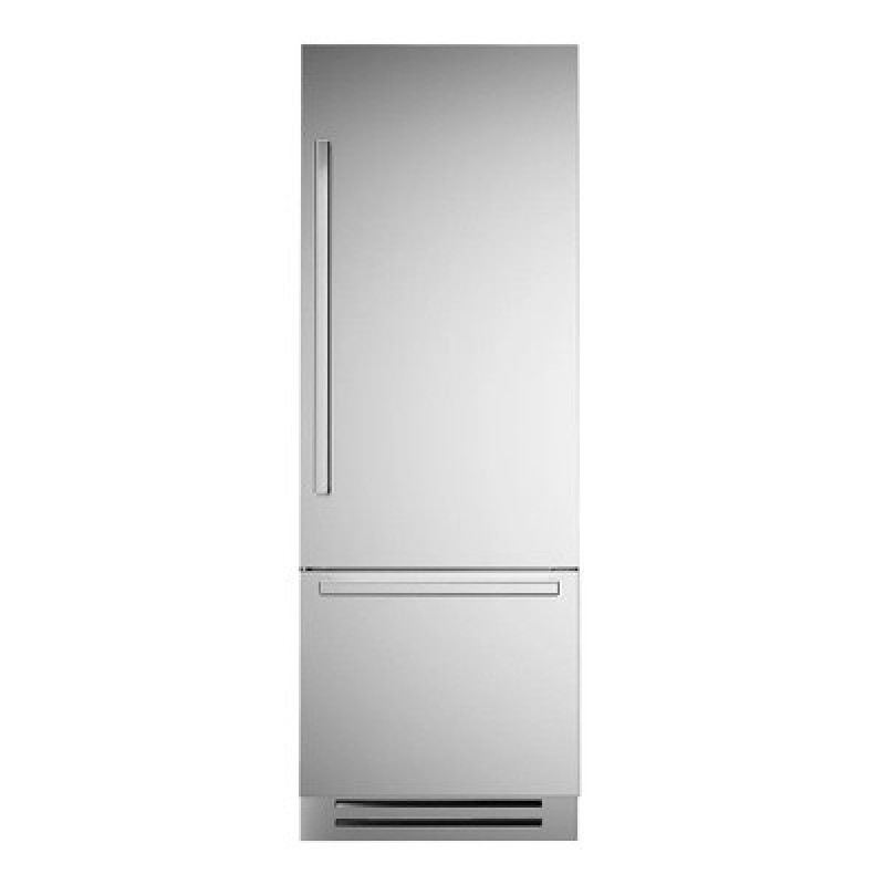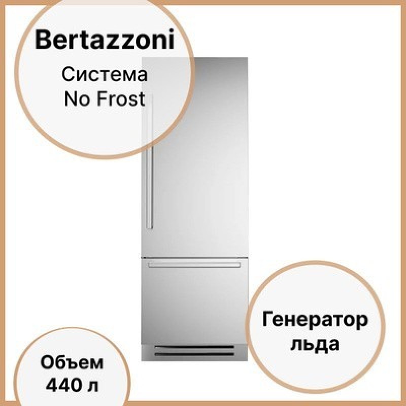 Встроенные холодильники – это отличное решение для тех, кто хочет максимально эффективно использовать пространство своей кухни. Встраиваемый холодильник легко интегрируется в кухонный гарнитур и позволяет существенно сэкономить место. В нем может быть морозильная камера с системой no frost, то есть не требующая размораживания. Холодильники могут быть двухкамерными, то есть с морозильной камерой отдельно, или однокамерными, где все продукты хранятся в одном отделении. Однако двухкамерный холодильник предпочтительнее, так как он позволяет лучше организовать хранение различных продуктов. Выбор встроенного холодильника зависит от размера кухни и количества продуктов, которые вы хотите хранить. Но в целом, встроенные холодильники - это отличное решение для тех, кто хочет максимально использовать пространство своей кухни и обеспечить оптимальное хранение продуктов. Встраиваемые холодильники Bertazzoni разработаны, спроектированы и изготовлены в Италии с использованием материалов и компонентов самого высокого качества. Запатентованная система дверного навеса "lift & swing" делает их идеальным выбором как для отдельно стоящего холодильника, так и встраиваемого. Благодаря одному из 2 доступных комплектов ручек в стиле серий Professional, Master и Heritage, эти холодильники легко интегрируются со всей другой бытовой техникой Bertazzoni в гармонирующие по стилю комплекты для настоящей, высокопроизводительной кухни. Встраиваемые холодильники созданы для долгосрочной службы, благодаря использованию металла и стекла внутри и снаружи для улучшенного контроля температуры. Система бокового обдува с двойным компрессором и испарителем для холодильника и морозильной камеры снижает потери холодного воздуха при открывании дверей и обеспечивает лучшую в своем классе внутреннюю глубину. Внутренняя конфигурация разработана с максимальной гибкостью: объем холодильника 335 л и объем FlexMode 105 л. Холодильник-морозильник FlexMode позволяет одним касанием переключать нижнее отделение с морозильной камерой на холодильник. Внутреннее светодиодное освещение сверху и по бокам обеспечивает яркий свет внутри на всех уровнях с минимальным потреблением энергии. Встроенный фильтр для воды, подключенный к водопроводу, обеспечивает регулярное производство кубиков льда настраиваемого размера.