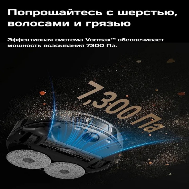 Эффективная система Vormax™️ обеспечивает мощность всасывания 7300 Па, которая позволяет добиться превосходных результатов в сухой уборке.